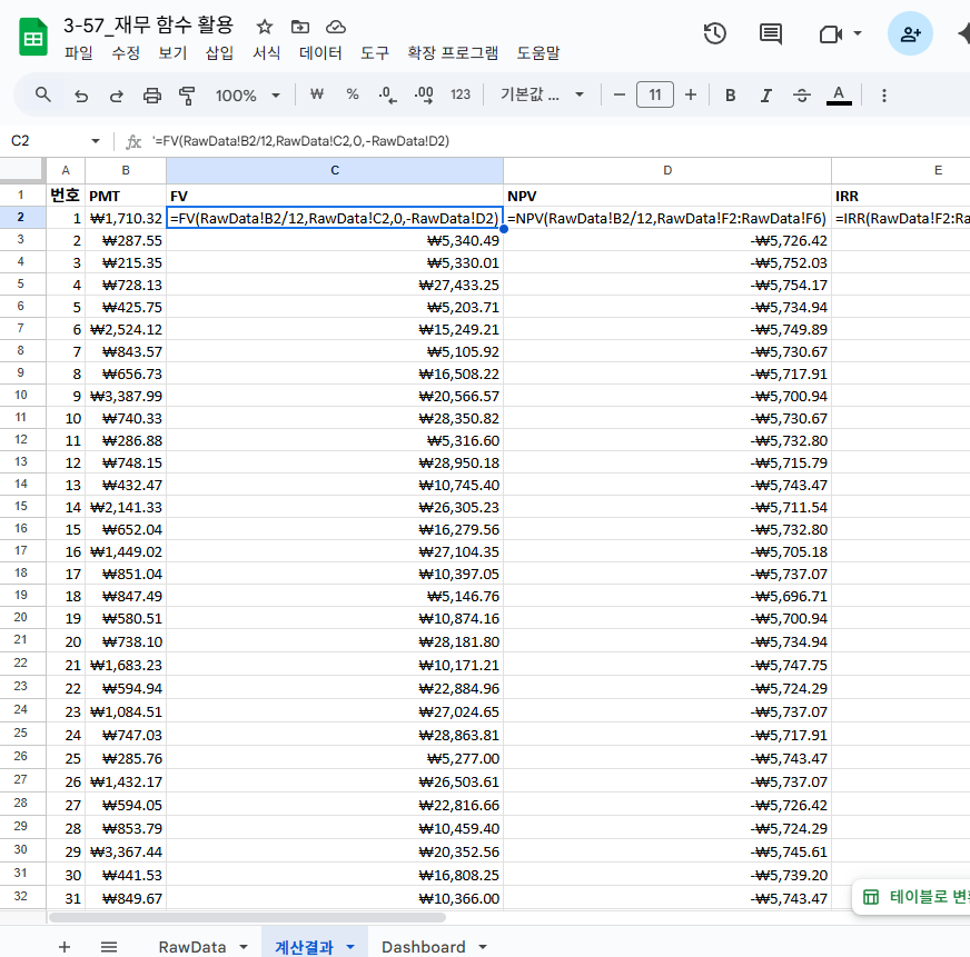 - pmt: 매 기간 내는 돈(적금). 내가 매달 저축하는 돈이라고 생각하면 돼요. (중요! 내 주머니에서 돈이 나가는 것이므로 보통 마이너스(-) 부호를 붙여 입력해요)