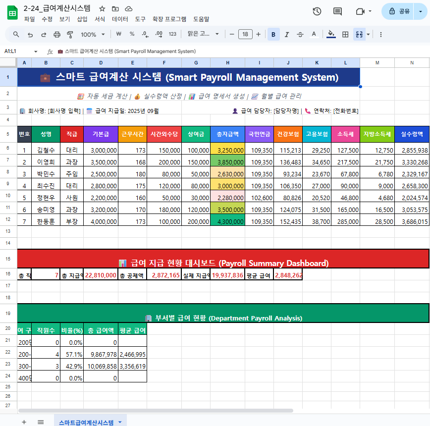 2-24. 정확하고 효율적인 급여 관리의 핵심! 스프레드시트 급여계산시스템