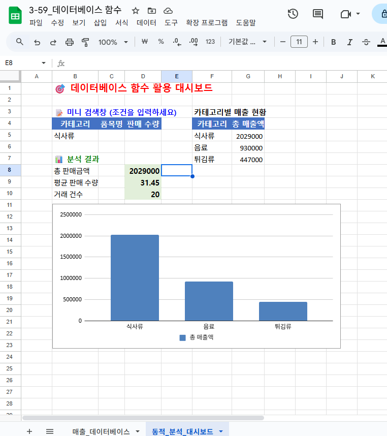 - 결과: '식사류'에 해당하는 모든 '판매 금액'의 합계가 계산됩니다.