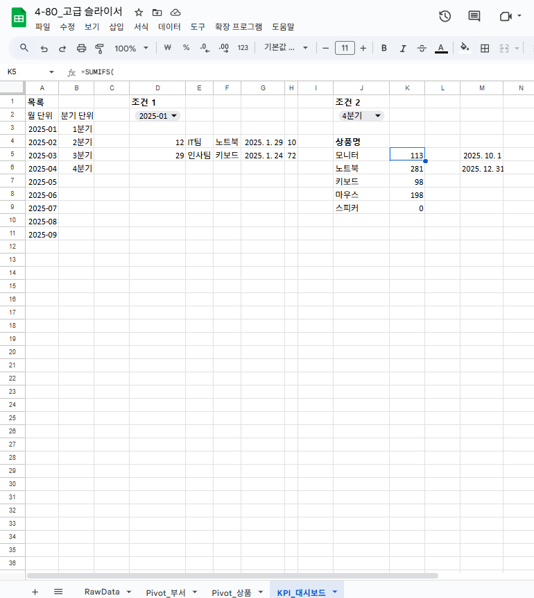 4-80. 스프레드시트 고급 슬라이서